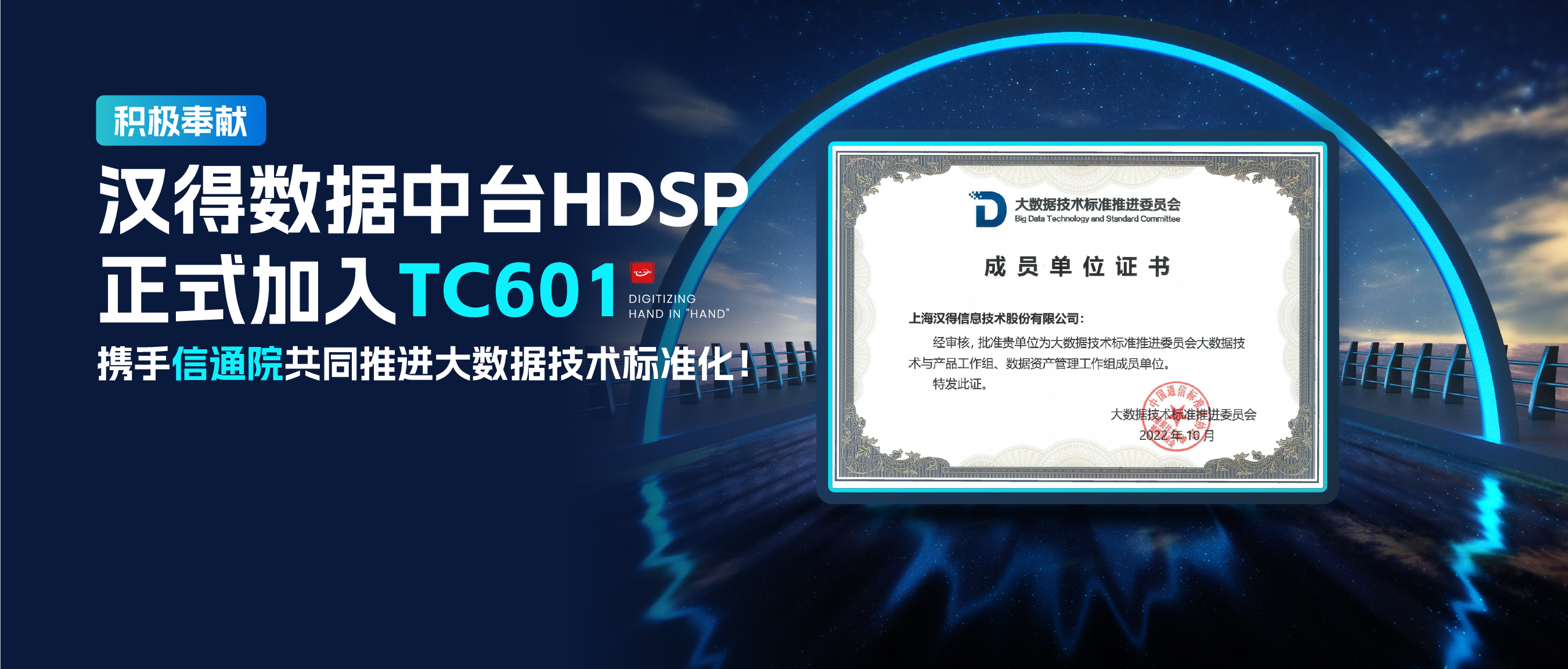 万象城AWC数据中台HDSP经中国通信标准化协会下的大数据技术标准推进委员会(以下简称“TC601”)审议批准,万象城AWC数据中台HDSP正式获准加入大数据技术标准推进委员会,万象城AWC数据中台HDSP将持续承担社会责任,携手中国信通院共同推进大数据技术标准制定与核心技术开展,共谋数智大计。