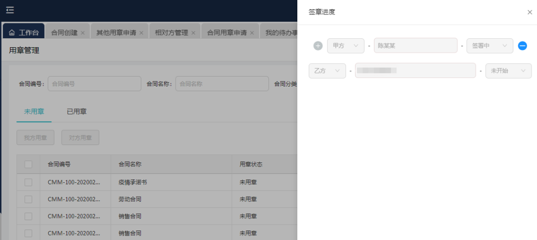合同签署:签署归档智能化,支持电子签章、扫描归档。