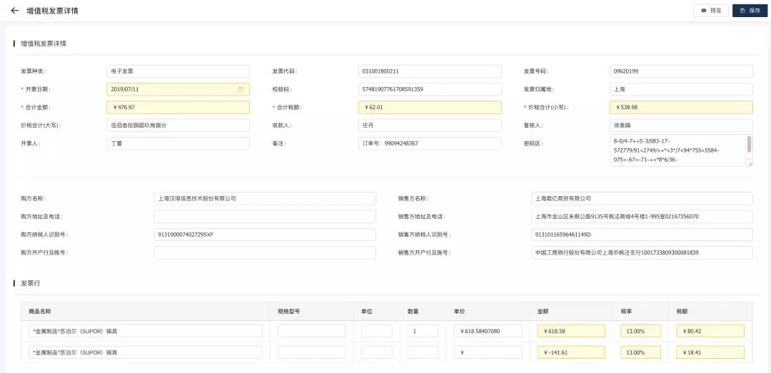 增值税发票识别