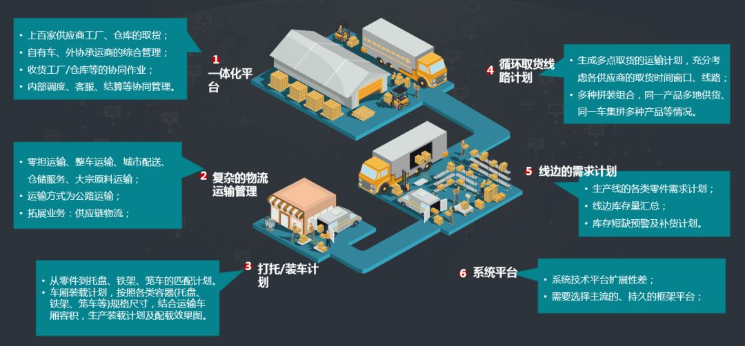 建设柔性、基于节点数据采集、支持多方协同的基础物流运输管理系统。该系统能够管理物流订单、在途库存、物流运输调度、物流在途预警、物流运输结算、物流绩效统计分析等。有效形成基于物流链的数字化管理基础。该板块核心使用对象为基层作业员。