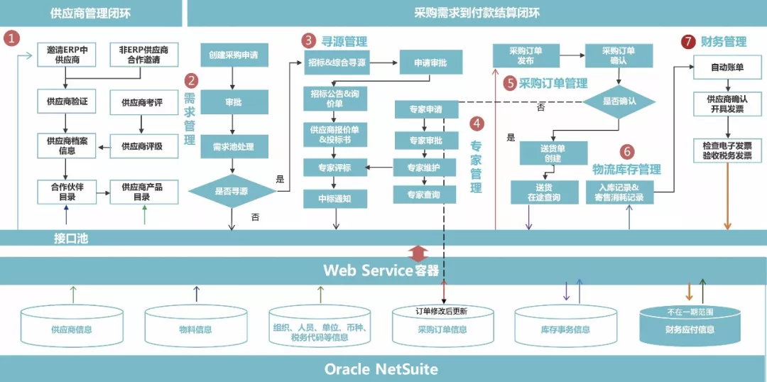 基于Oracle NetSuite的SDN平台,HAND SRM与Oracle NetSuite深度集成,共同实现“链接企业采购供应信息流,打通企业内部与供应商之间的信息孤岛”的核心目标。这套联合解决方案,既能满足企业采购从供应商生命周期管理、采购寻源和招投标等前端业务要求,又能基于Oracle NetSuite强大的ERP、报表分析以及移动APP等功能,实时给予管理层决策所需的数据信息,更是互联网时代更高要求下的产品结晶,可覆盖采购业务过程中的各种需求以及支持按需定制化,满足企业多变的特性。