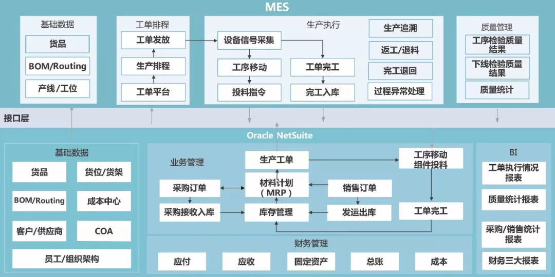 伴随着智能制造和工业4.0的浪潮,制造型企业的信息化需求正在变得越来越深入和多样化。 Oracle NetSuite作为企业的主干系统,强调财务业务一体化,而制造型企业在制造端存在大量细节业务流程,这些流程因制造类型不同而不同,需要更为专业的生产系统。