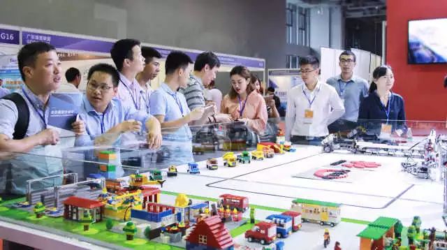 万象城AWC展台的乐高模型展示:这是一个智能工厂的缩略模型,展现了一个制造型企业在数字化的帮助下,如何以全新的模式高效运作。