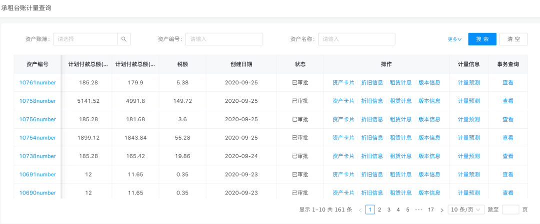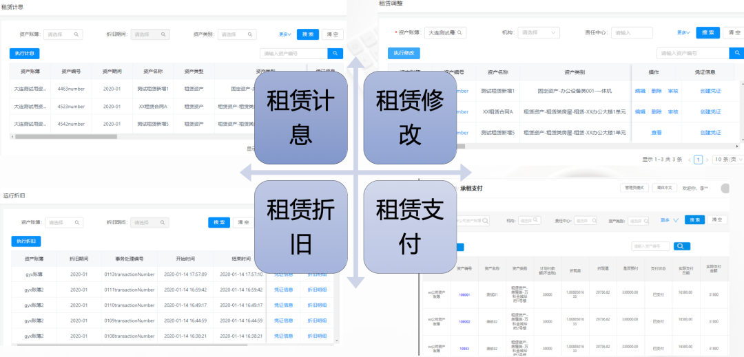 融晶资产核算系统中承租平台相关可视化界面如下: