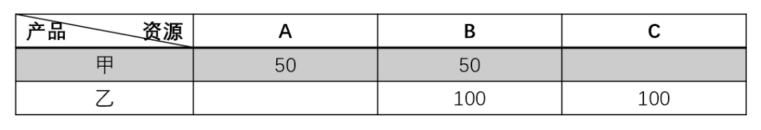 【例】某工厂有3条产线A\B\C,生产甲、乙两种商品,其中甲可在A、B线每天可生产50,乙可在B、c线每天可生产100。如此所形成的数据矩阵是产能模型的高阶形态,既表达范围又表达程度。