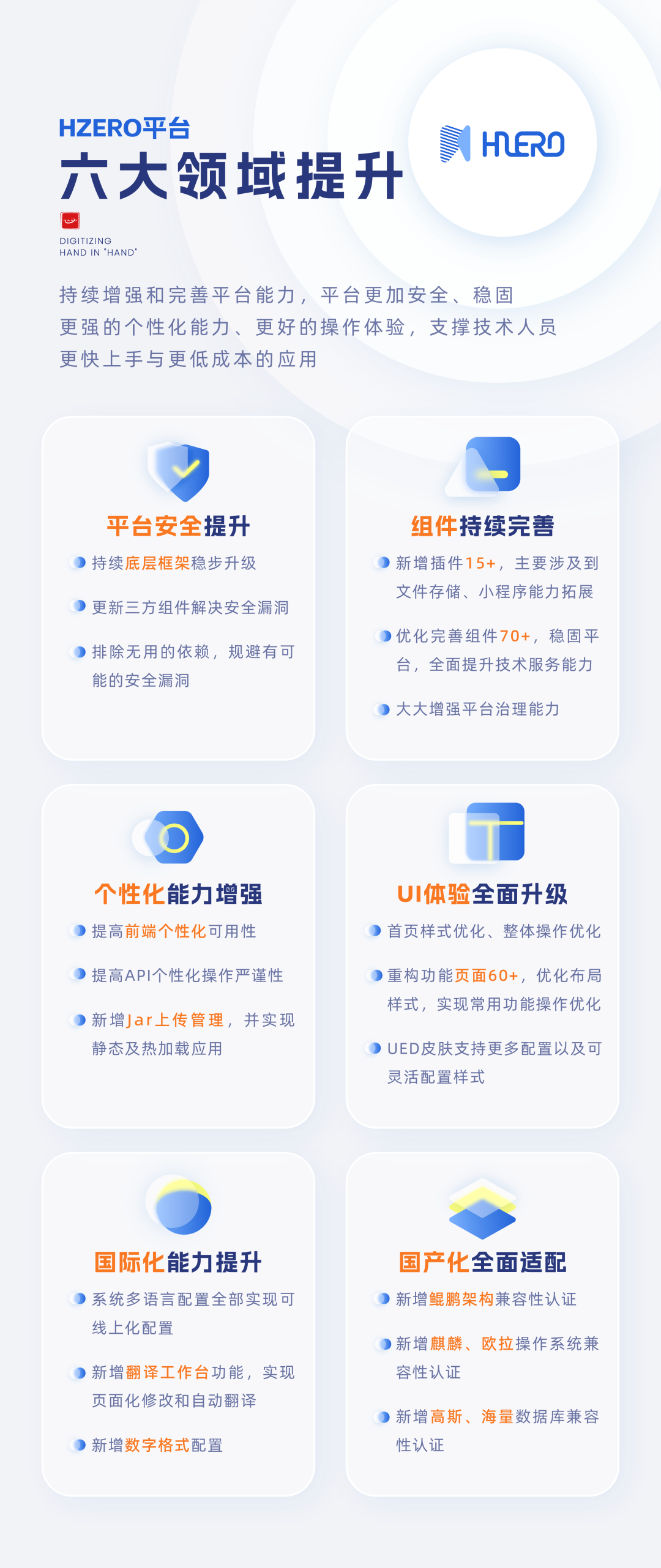 HZERO 企业版发布1.10.0.RELEASE版,新发布多个新增组件、新增功能,并针对平台进行组件以及常用功能优化、修复已知缺陷,大大加强 HZERO 数字化 PaaS 平台的全面性、稳定性及安全性。