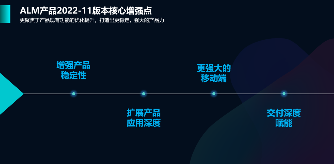 本次资产管理软件(ALM)发布2022-11版本产品,新版本主要从增强产品稳定性、扩展产品应用深度、打造更强大的移动端三个方面对产品进行重点扩展和优化改造,使产品能更好满足客户的需求,进一步降低交付团队的二次开发及学习成本,顺利获得集中交付模式及产品本身为交付团队进行深度赋能。