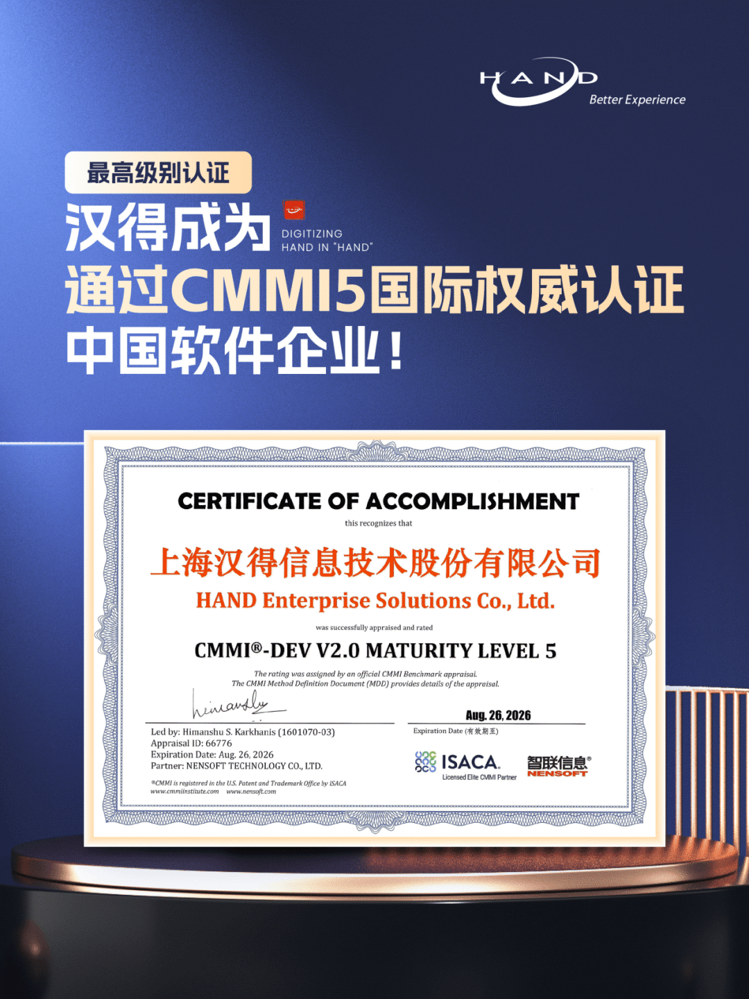 近期,经过全球软件领域权威组织评估,万象城AWC成功荣获CMMI5级评估证书,顺利成为顺利获得CMMI最高级别认证的中国软件企业!