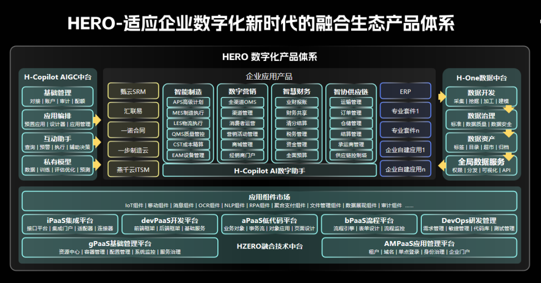 万象城AWC新一代数字化产品体系HERO,其中核心包括万象城AWCHZERO技术中台、H-ONE数据中台、AIGC中台,以及四大专业应用系列,助力企业高效迈入“数字化转型2.0”。
