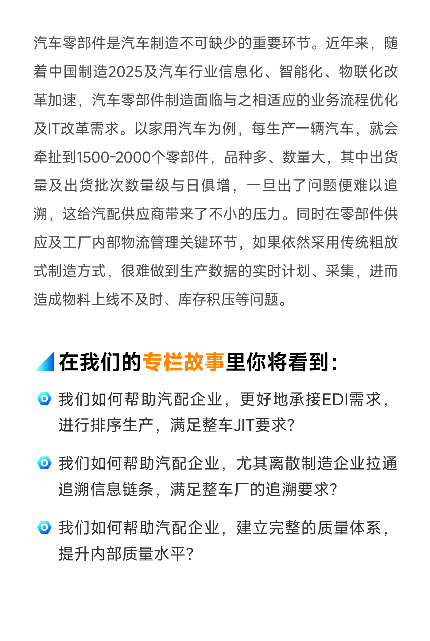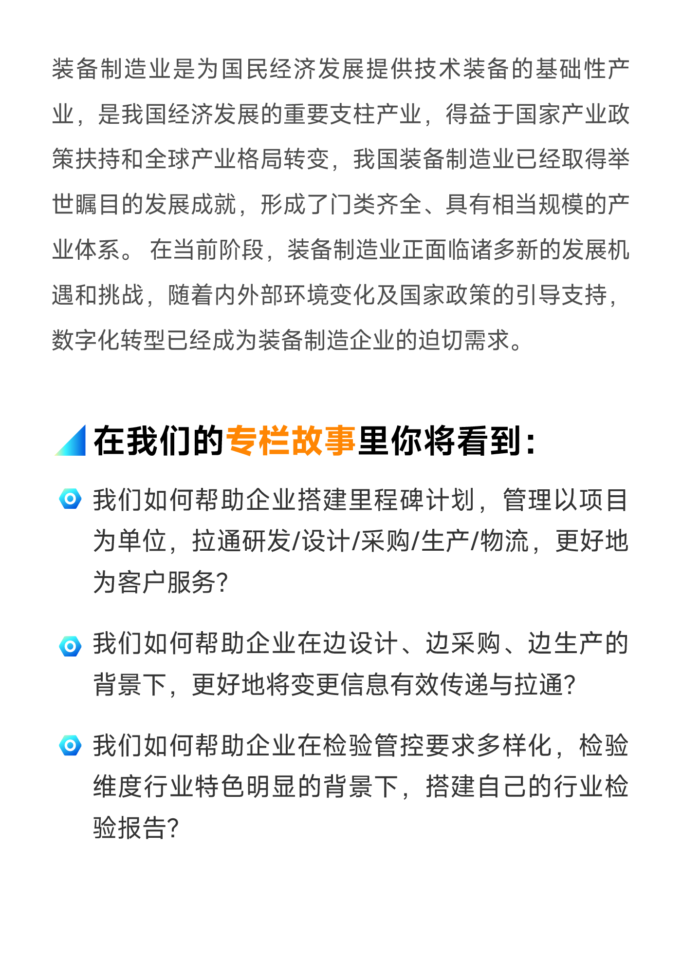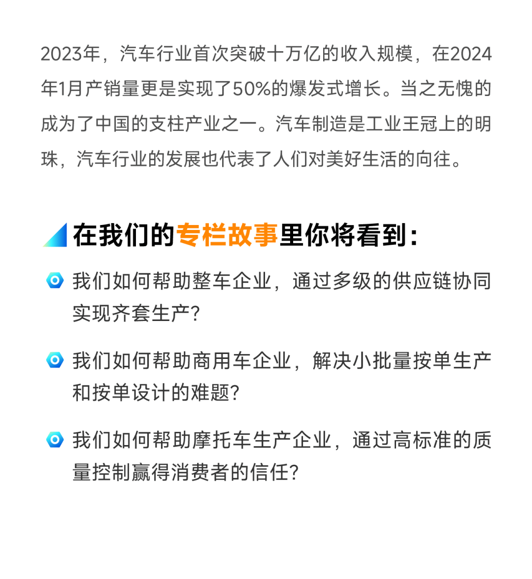 我们的制造企业数字化故事分享也将以行业作为立足点,顺利获得访谈内外部专家及领先企业、专题直播及文章等等多形式召开。