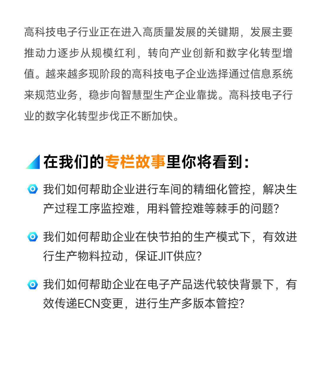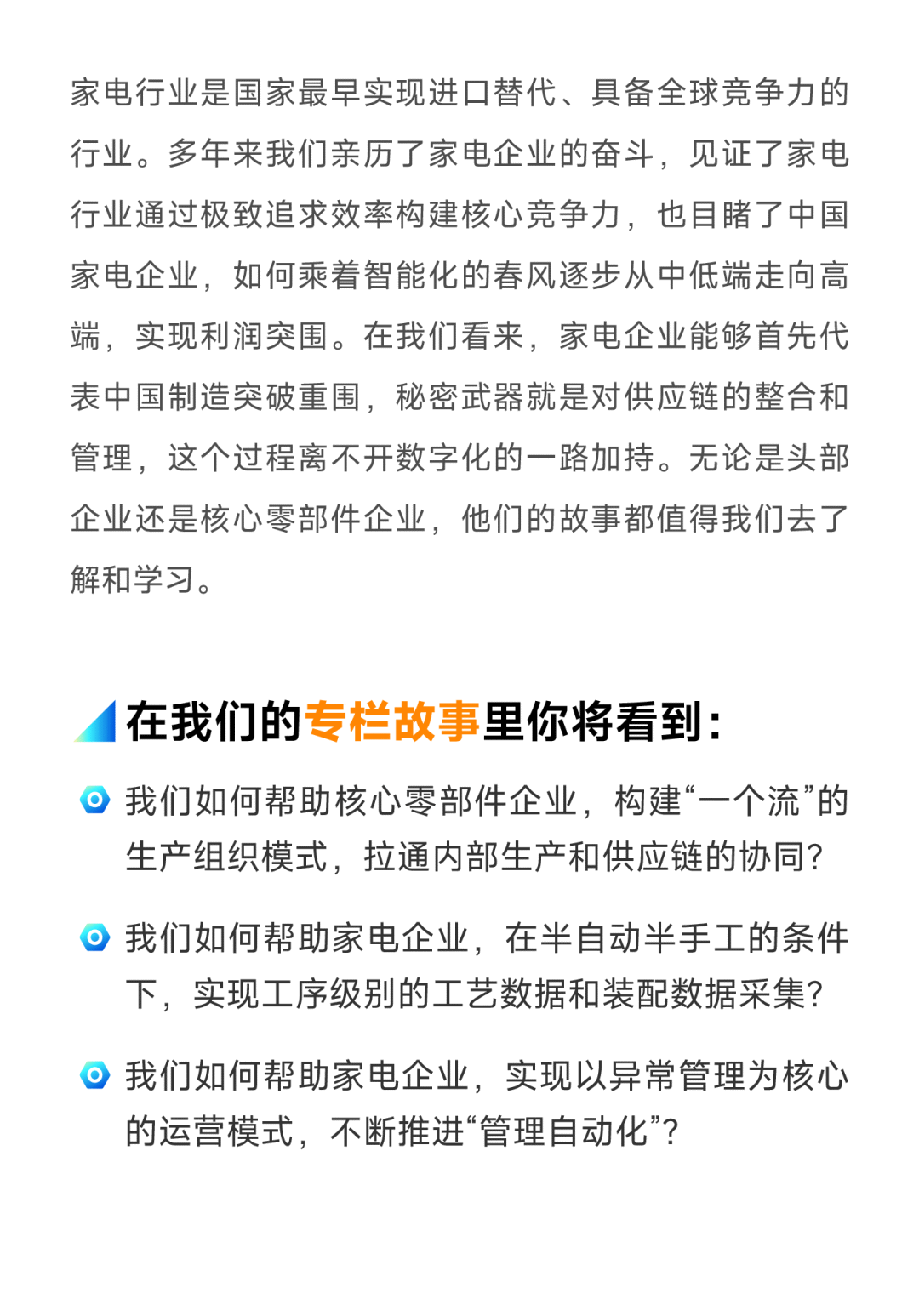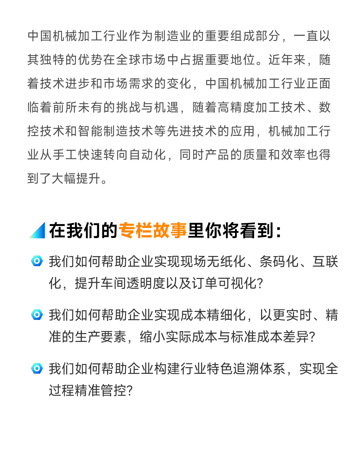 我们的制造企业数字化故事分享也将以行业作为立足点,顺利获得访谈内外部专家及领先企业、专题直播及文章等等多形式召开。