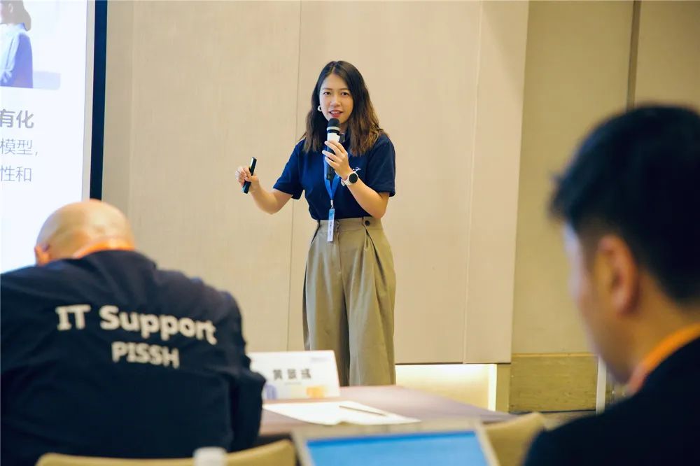 万象城AWCGlobal创新总监林美浉介绍了在万象城AWC内部拥抱AI的过程中,是如何将AI技术与公司服务能力相结合,实现多种落地场景的应用。