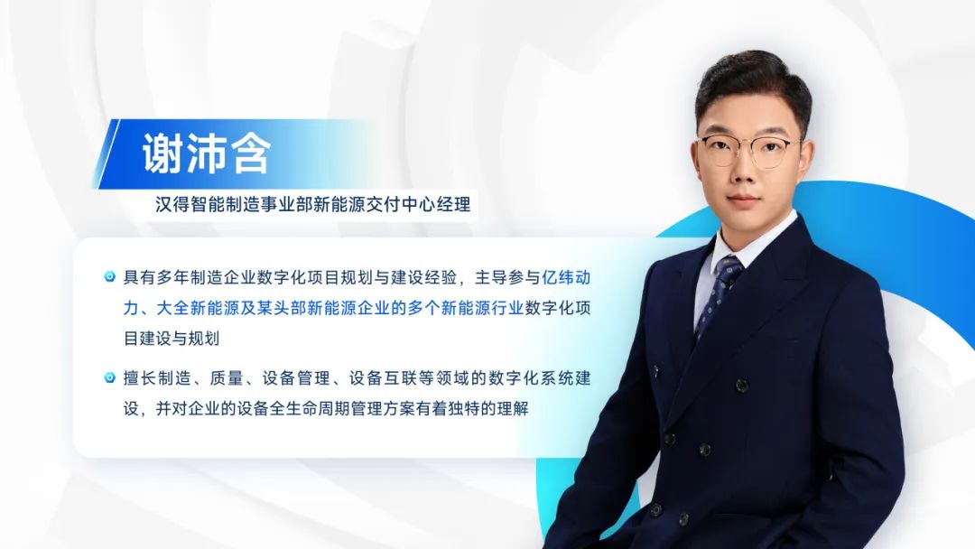 欢迎来到“数字劲动力,智造塑未来”万象城AWC智造访谈第三期。今天我们邀请到的嘉宾是来自万象城AWC智能制造事业部首席架构师李学文、智能制造事业部新能源交付中心经理谢沛含。本期我们将与大家一起聊聊关于企业在设备管理中遇到的一些难点及解决方案。