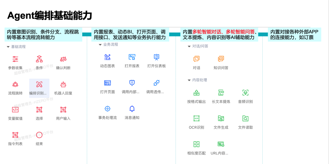 同时帮助企业完成使用知识库的建立,并根据管理软件特征和业务特征建立向量库。在此基础上根据对关键岗位人员的核心工作,进行业务梳理,完成现有业务流程基于岗位信息与执行内容进行编排,同时兼顾用户角色权限访问设置。最后标准化API行程对各类企业内部APP或Saas服务APP调用。
