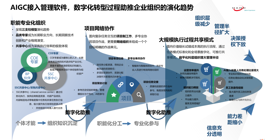 最终将信息助手和执行助手的能力,定向转化为一个个“硅基人”智能体,服务于财务账务、供应链计划、仓储物流、采购寻源与执行、营销运营等关键管理岗位。