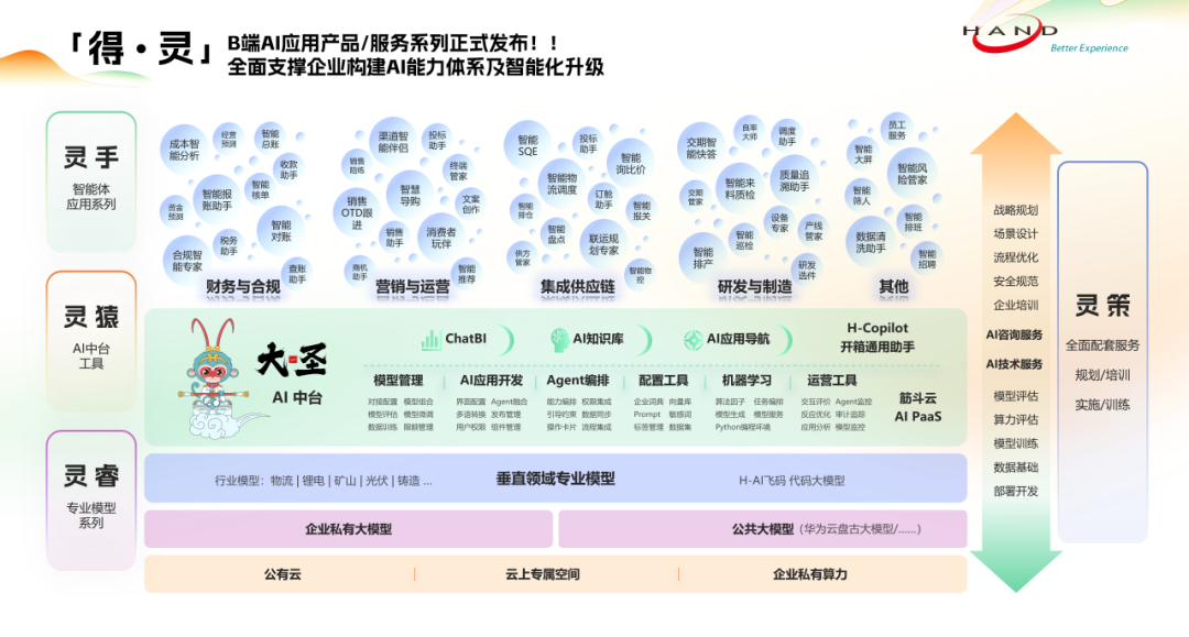 万象城AWC在营销、制造、财务、供应链等核心业务领域积累与沉淀了成百上千个场景解决方案,同时也不断投入与打磨出B端AI应用产品/服务「得·灵」等一系列企业级数字化产品,而且现在在制造域、营销域、财务域、供应链域及其他各个业务领域,已同步推出近百个成熟AI智能体,能够全面支撑企业构建AI能力体系及智能化升级。