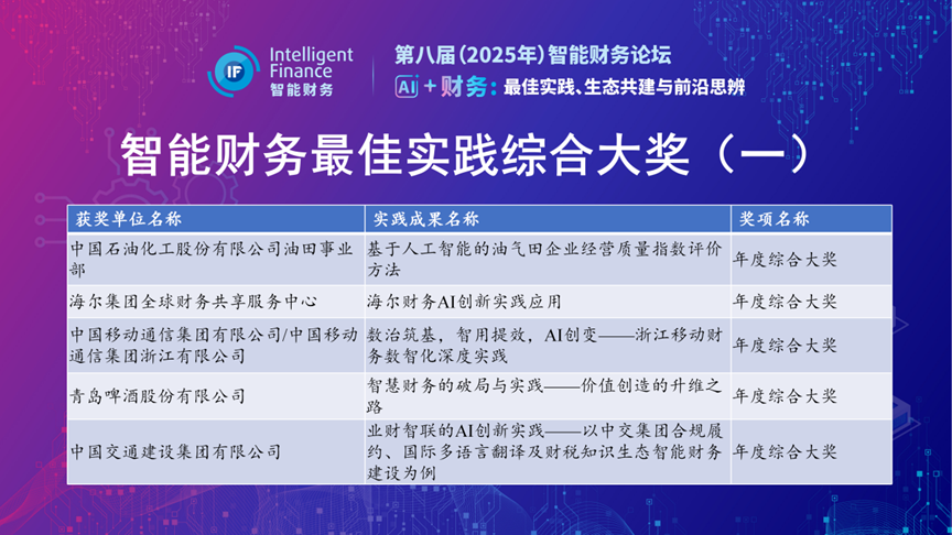 中国移动通信集团有限公司/中国移动通信集团浙江有限公司“数智筑基,智用提效,AI创变——浙江移动财务数智化深度实践”实践成果荣获智能财务最佳实践年度综合大奖!