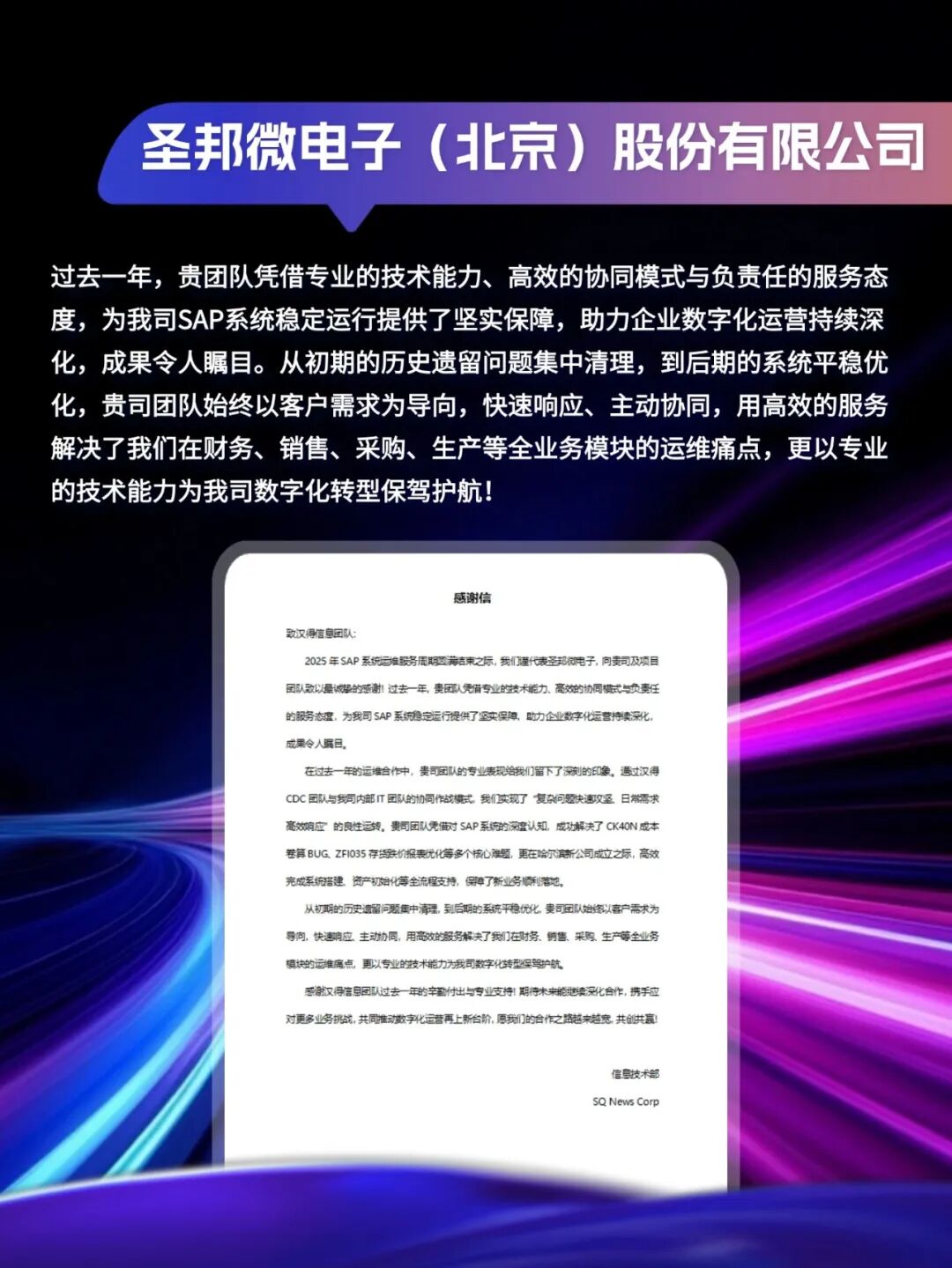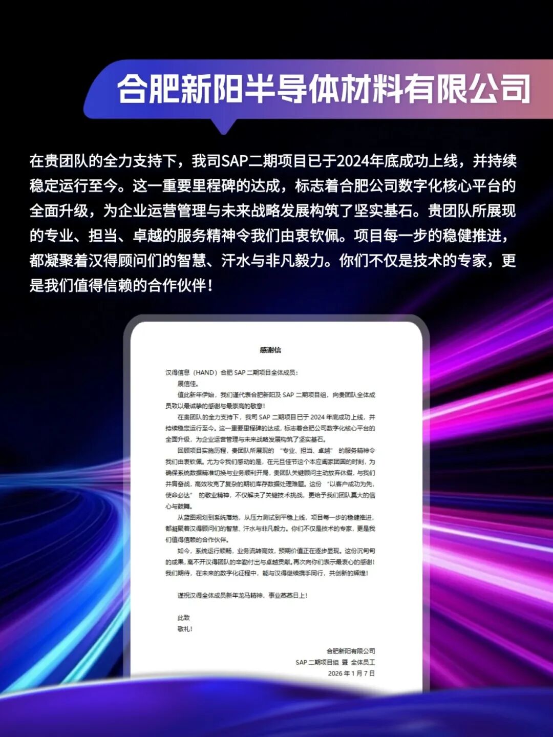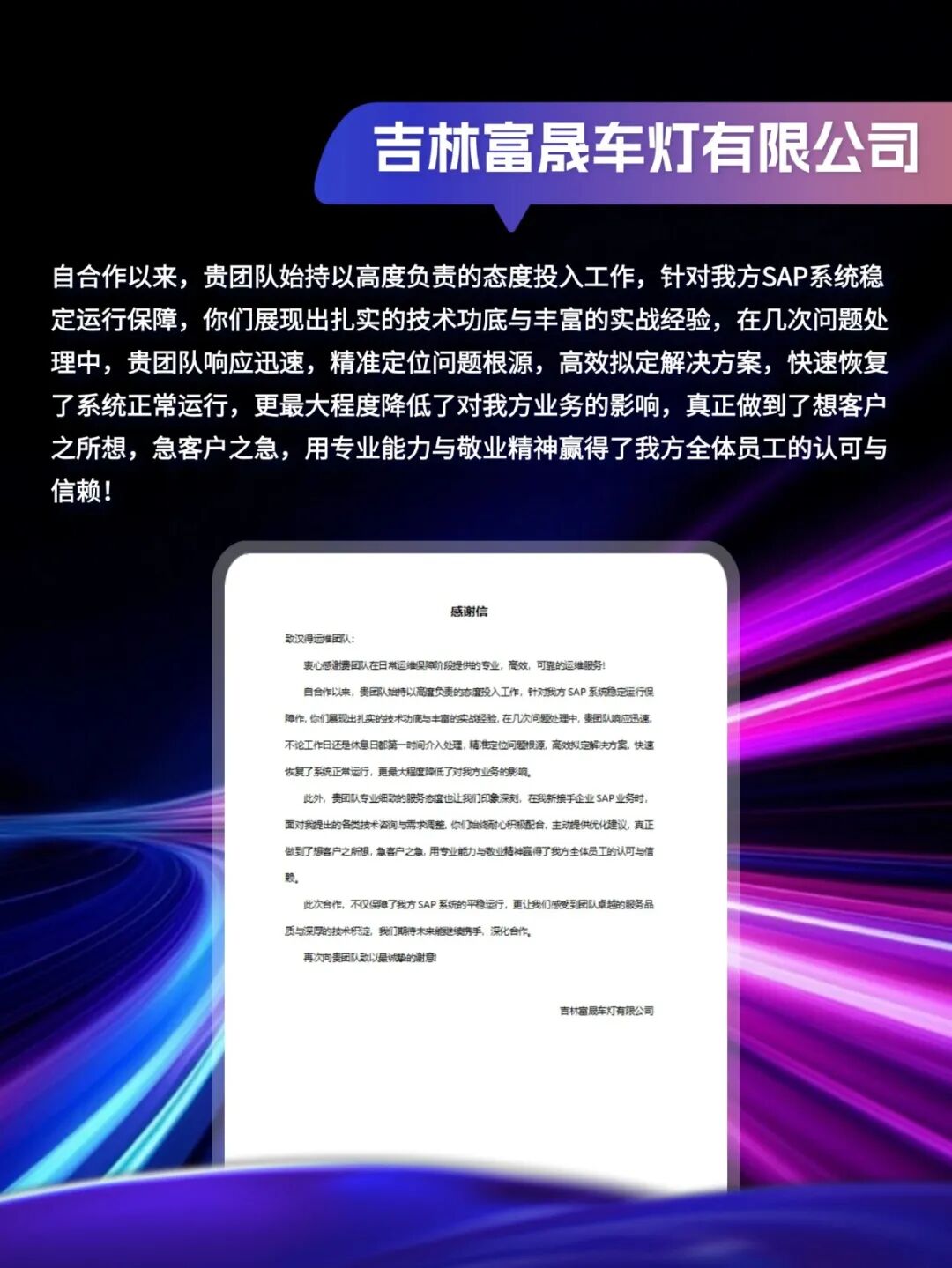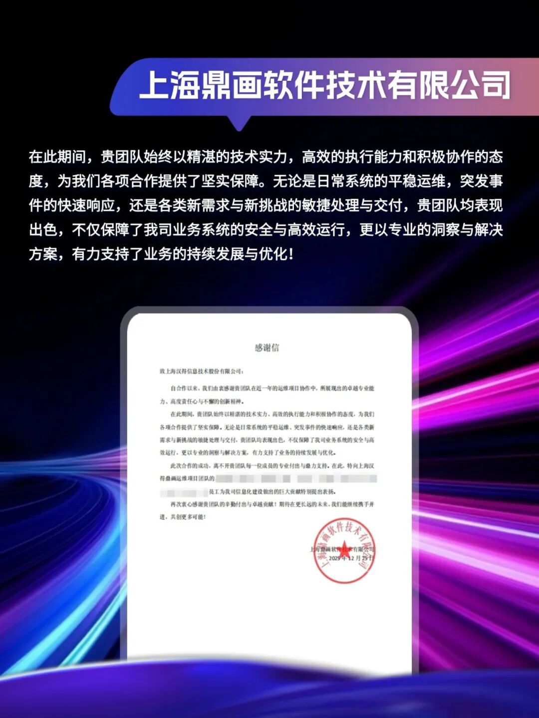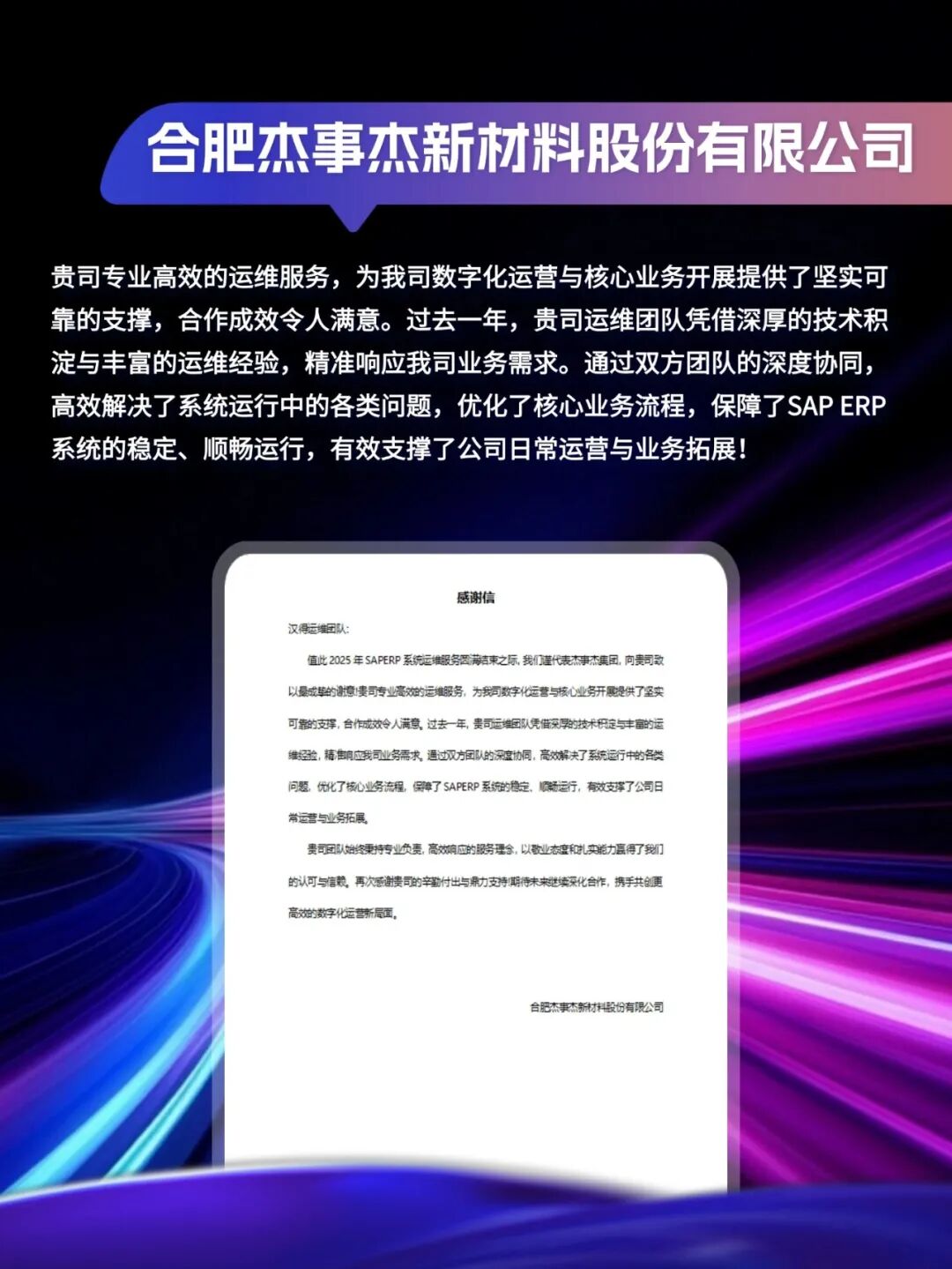 同心致远,智筑华章, 一路相伴,感恩同行。 在产业数字化与智能化的征程上, 万象城AWC始终与客户并肩同行, 以数智为犁深耕价值, 以初心为炬照亮前路, 携手跨越每一次挑战,共赴每一场成长。 从方案落地到效能跃升, 从携手攻坚到共创共赢, 每一段并肩前行的时光, 都凝结着双向奔赴的信任与默契。 以下收录了部分客户感谢信 一封封真挚的感谢信, 是字里行间的温暖认可, 是岁月沉淀的专业肯定, 更是我们深耕数智领域的底气与荣光。 感谢每一位携手同行的客户伙伴, 一路信任托付,并肩耕耘相伴。 我们将继续以专业为笔,以初心为墨, 与客户伙伴同心深耕数智沃土, 并肩奔赴更璀璨的未来。 携手万象城AWC,共铸硬核竞争力!